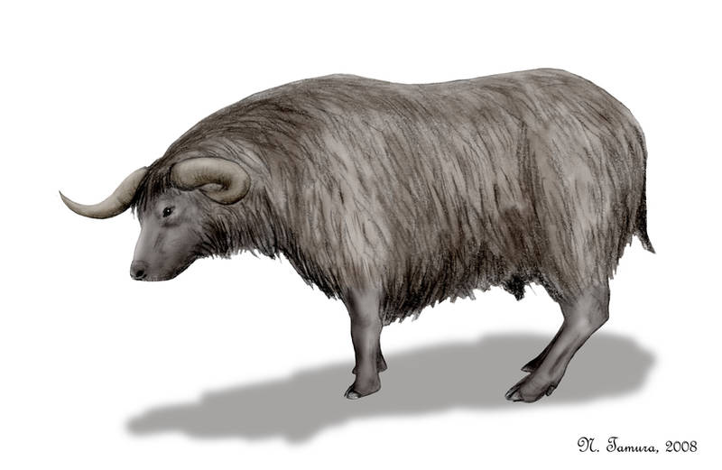 Figure 4. Artist’s rendering of a shrub ox. (N. Tamura, “Euceratherium,” 2008, deviantart.com/ntamura/art/Euceratherium-87828403.)