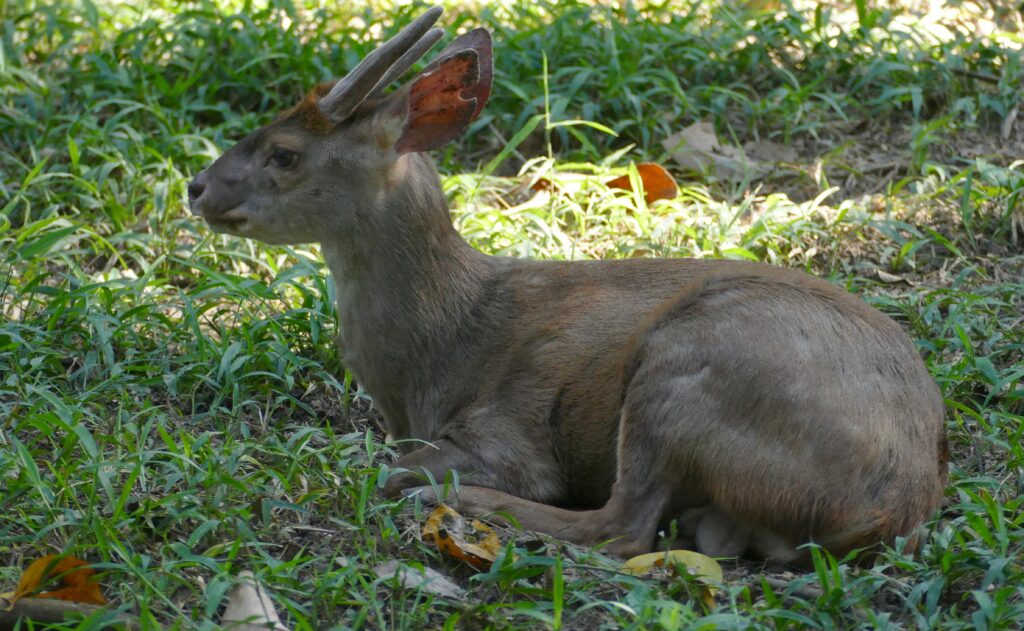 Figure 5. A Yucatan brown brocket deer. (Bernard Dupont, Wikimedia Commons, s.v., “Yucatan Brown Brocket Deer (Mazama pandora) male, captive specimen, Chiapas,” commons.wikimedia.org/wiki/File:Yucatan_Brown_Brocket_Deer_%28Mazama_pandora%29_male,_captive_specimen,_Chiapas.jpg.)