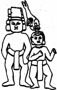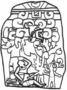 Figure 6. Child descends for birth (with emphasis), Stela 10, Izapa. (Drawing by the author after Norman, Izapa Sculpture, Part 2, 109.)
