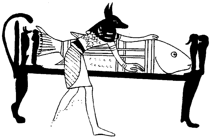 Figure 16. Fish as mummy, Thebes, Deir el-Medinah, Tomb of Kha’bekhet #2, (Drawing by the author after photograph from Wikimedia Commons.)