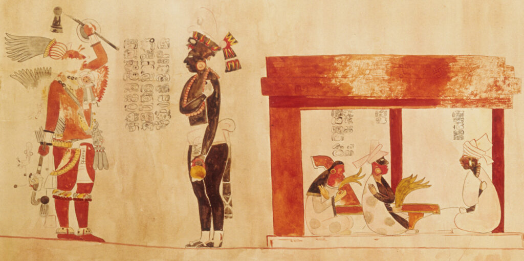 Figure 1. Detail of Uaxactun mural (circa 300 BCE–900 CE). Museum Collections, 1950. Courtesy of the Peabody Museum of Archaeology and Ethnology, Harvard University, 50–1–20/22982.