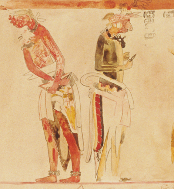 Figure 2. Detail of men in Uaxactun mural. Peabody Museum of Archaeology and Ethnology, Harvard University.