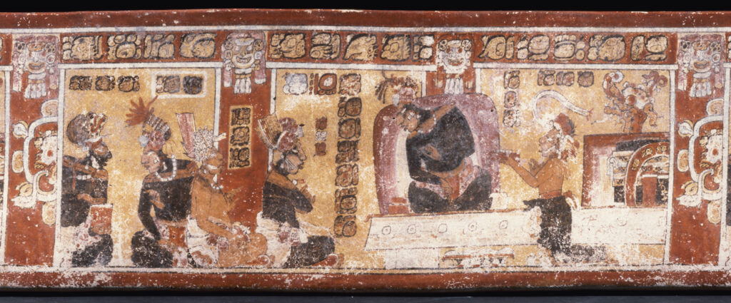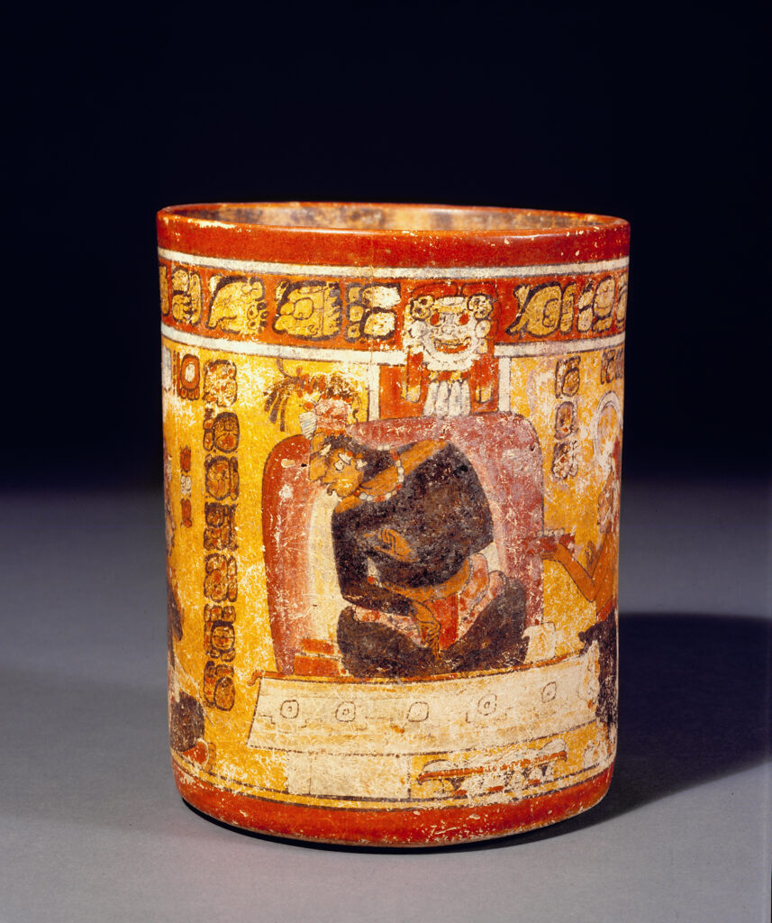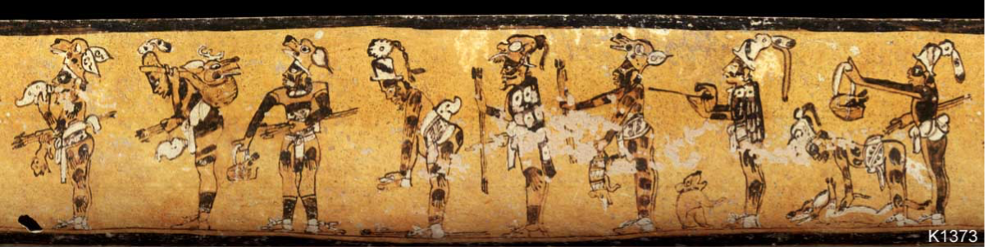 Figure 4. Maya ceramic cylinder vase (circa 650–750 CE) courtesy of Justin Kerr, K2784, Dumbarton Oaks, Trustees for Harvard University, Washington, DC.