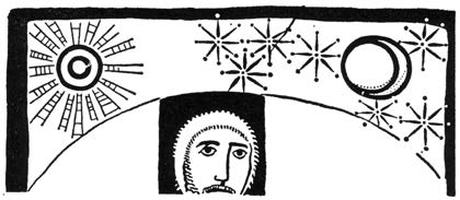 Figure 11. Heavenly Ascent of Moses (detail), Showing Laddered Sun with Moon and Stars.268