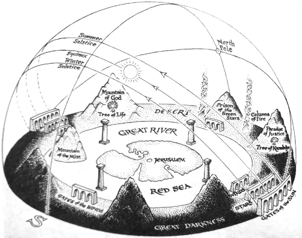 No tree in the south is shown on the map in this figure, and we do not currently have access to an interpretation of what is shown there. However, from another time and culture we have the report of Severus of Antioch (fl. 512–518) that avers, similar to other anti-Manichaean sources that “those (regions) which lie to the south and to the meridian belong to the Tree of Death, which they call Hyle [i.e., Matter], being very wicked and uncreated” (as cited in B. Bennett, Iuxta unum, 69). In Mandaean and Zoroastrian cosmogonies the north and south are associated with “above” and “below” (i.e., the underworld).