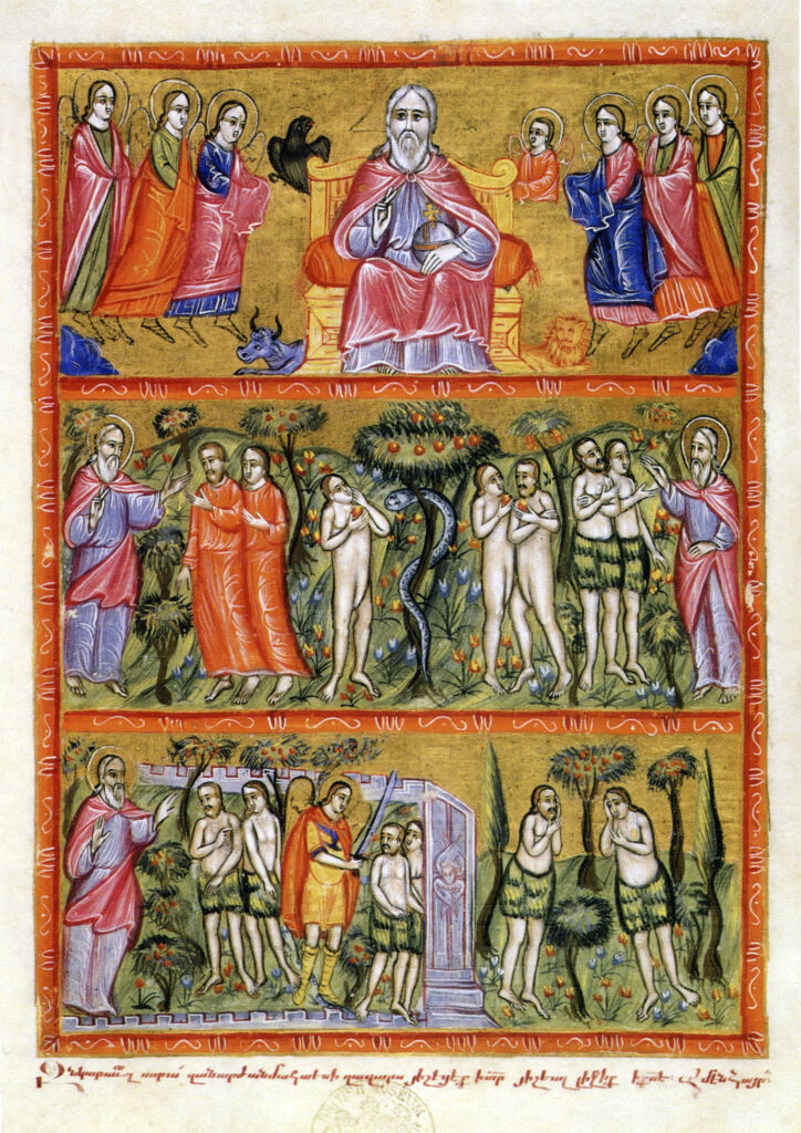 Western art typically portrays Adam and Eve as naked in the Garden of Eden, and dressed in “coats of skin” after the Fall. However, the Eastern Orthodox tradition depicts the sequence of their change of clothing in reverse manner. How can that be? The Eastern Church remembers accounts that portray Adam as a king and priest in Eden, so naturally he is shown there in his regal robes.31 Moreover, Orthodox readers interpret the “skins” that the couple wore after their expulsion [Page 72]from the Garden as being their own, now fully human, flesh. Gary A. Anderson interprets this symbolism to mean that “Adam has exchanged an angelic constitution for a mortal one”32—in Latter-day Saint parlance, they have lost their terrestrial glory and are now in a telestial state.