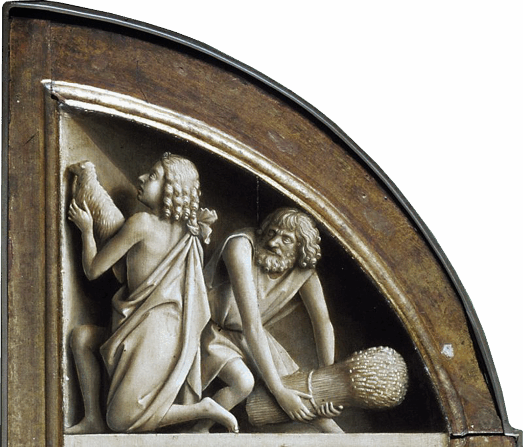Figure 8. Jan van Eyck (ca. 1395–1441), The offering of Abel and Cain, 1425–1429.
