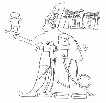 Figure 4. Relief of Tudkhaliya IV from Yazilikaya, ca. 1250 BC. Redrawn by the author from James B. Pritchard, The Ancient Near East in Pictures Relating to the Old Testament (Princeton, New Jersey: Princeton University Press, 1954), 182.