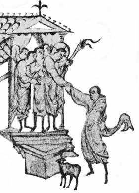 Another reference to a handclasp between the earthly king and the heavenly King is alluded to in Psalm 41, which some biblical scholars believe should be viewed in a temple context.5 The King James Version of verse 12 reads: “as for me, thou upholdest [tamak, grasp or seize or take hold of] me in mine integrity, and settest [natsab, to be stationed] [Page 423]me before thy face forever.” Mitchell Dahood retranslates this passage as a request. It is rendered as follows: “grasp me. And set me before you forever.”6 In the case of either reading, to be before the Lord is to be in His presence. And the presence of the Lord was understood by the ancient Israelites to be symbolized by His throne (the ark of the covenant) in the Holy of Holies of the temple.