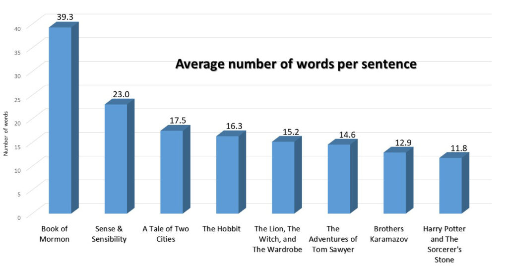 Figure 6. Comparing the sentence length of the Book of Mormon to other literary works.