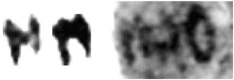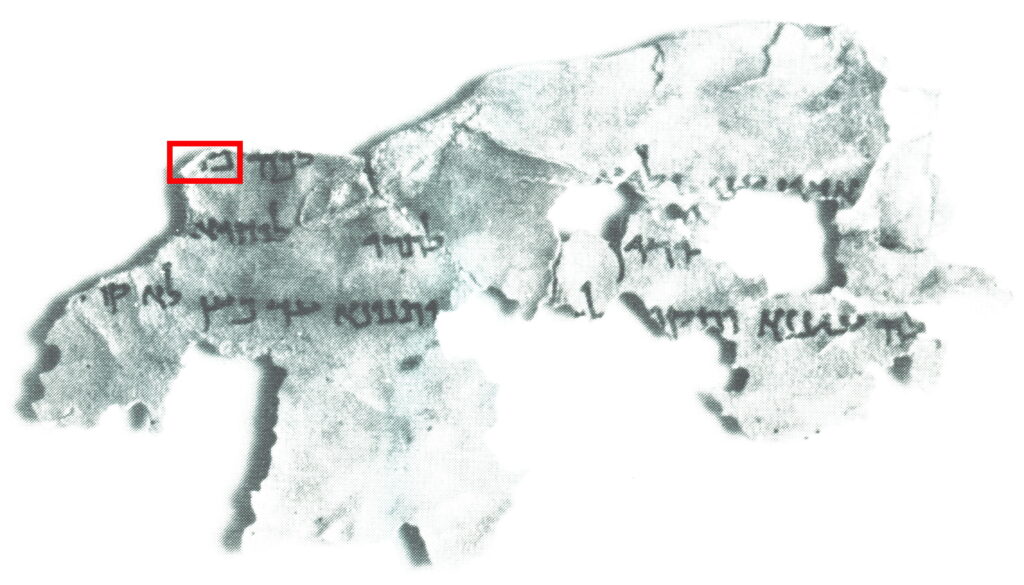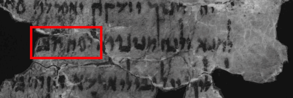 Figure 2. Digital image of ḥeth, heh, and the word הנמ (meaning “from him”) from 4Q530, illustrating the difficulties of distinguishing the similar-looking letters37