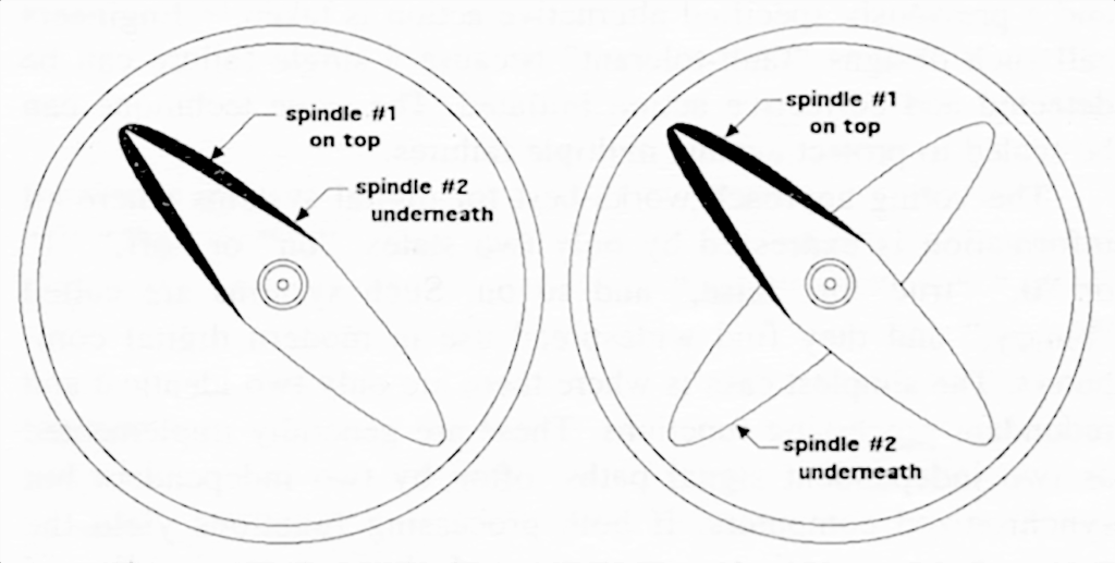In 1994, Robert Bunker observed that a single pointer or spindle would be an unreliable way of indicating direction, since it always pointed somewhere. He then innovatively suggests that two horizontal spindles could work together by both aligning in the same direction, one on top of the other, as shown in figure 2. When unified in that way it meant that the director was providing correct information. He adds that such a process would be using an engineering principle called “voting of redundant strings.” If the two spindles did not share the same alignment, it meant that the Liahona was not functioning. In his words: