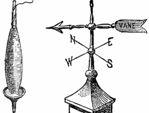 Figure 5. Left: A drop spindle for spinning thread; right: a spindle supporting a weathervane. (Shutterstock.)
