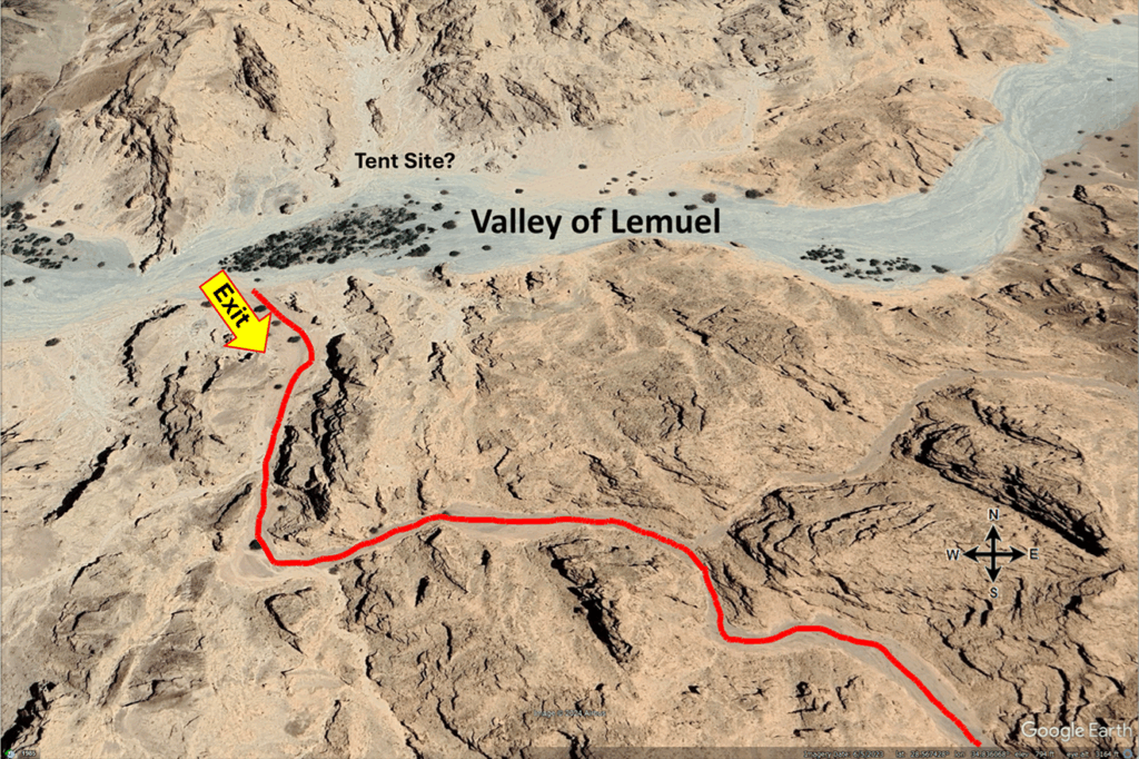 Figure 11. Lehi likely exited the valley of Lemuel by following the Liahona’s directions into an inconspicuous mountain pass. (Google Earth.)