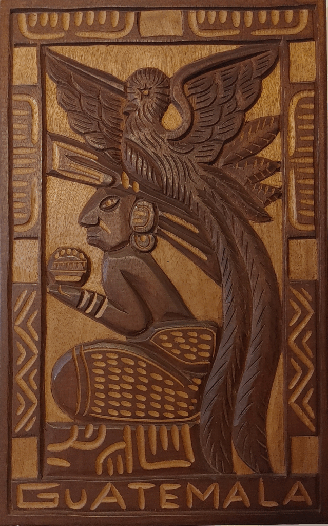 Figure 14. Wooden wall plaque purchased about 1990 from a local market in Guatemala that catered to tourists. (Photo by Wanless Southwick.)